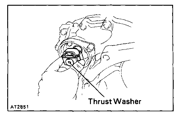 b. Coat the clutch drum thrust washer with petroleum jelly, and install it onto the direct clutch drum with the oil groove facing upward.