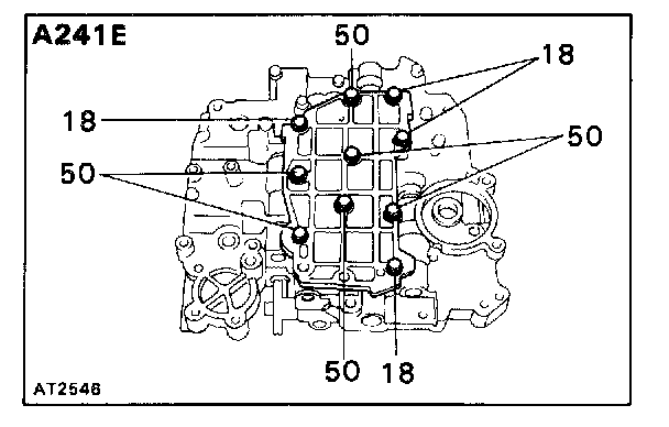 Install and finger tighten the nine bolts. (A241E)
