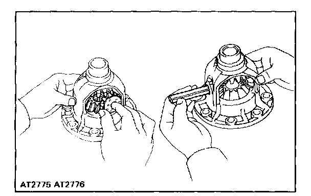 Measure the side gear backlash while holding one pinion gear toward the case.