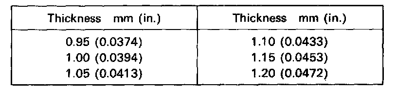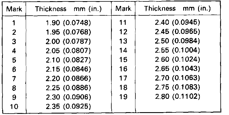 Thrust washer thicknesses: