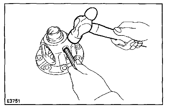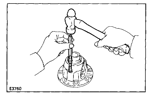 d. Using a pin punch and hammer, drive in the straight pin through the case and hole in the pinion shaft.