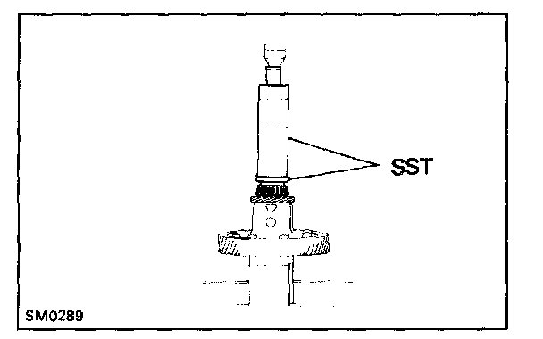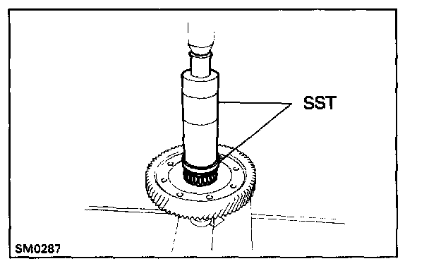 c. Using SST and a press, install the side bearing to the transaxle case side.