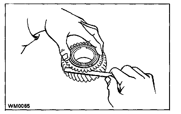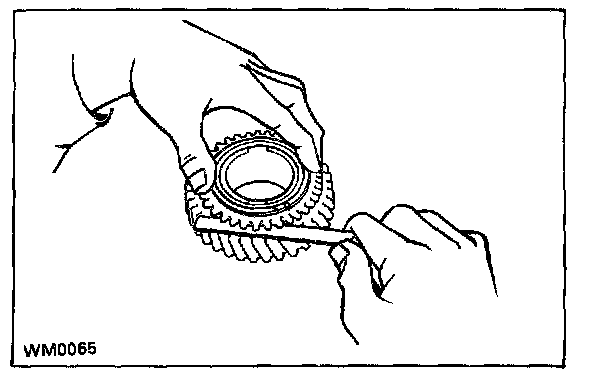 c. Measure the clearance between the synchronizer ring back and gear spline end.