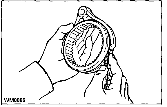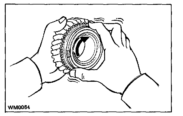 b. Check the braking effect of the synchronizer ring. Turn the synchronizer ring in one direction while pushing it to the gear cone and check that the ring is locked.