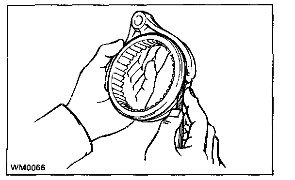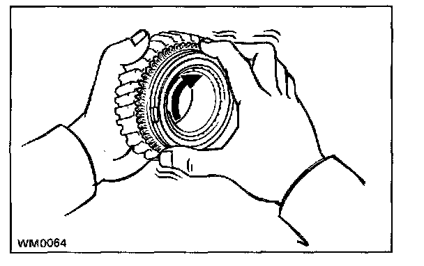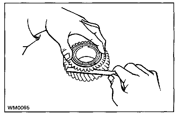 c. Using a feeler gauge, measure the clearance between the synchronizer ring back and the gear spline end.