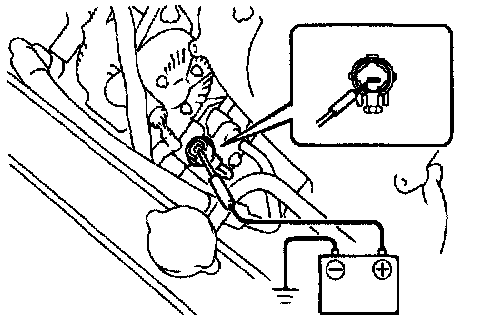 b. Connect the positive (+) lead from the battery to the terminal on the magnetic clutch connector and the negative (-) lead to the body ground.