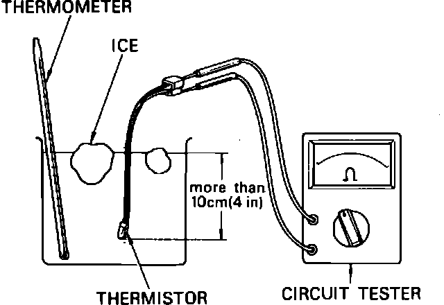 2. Immerse thermistor sensor in water as shown in Fig. 17, and connect suitable ohmmeter to thermistor.