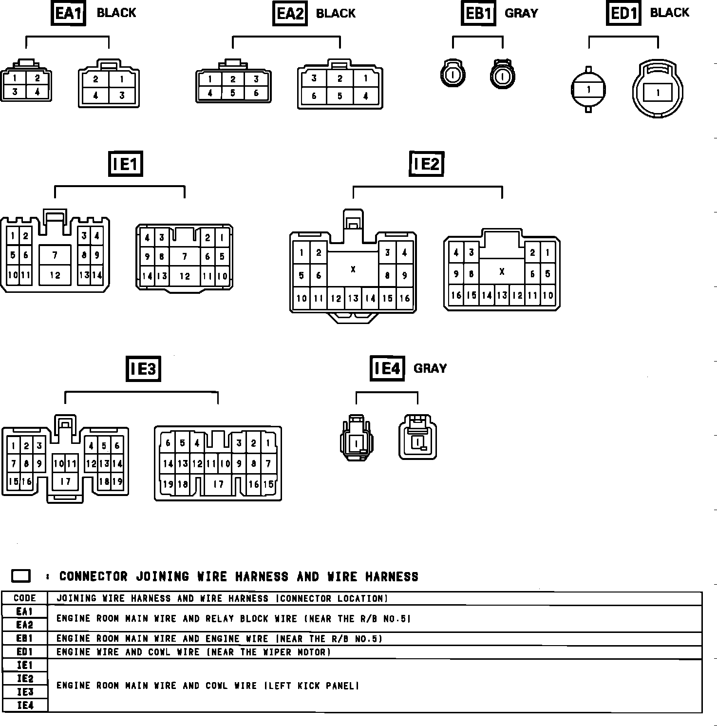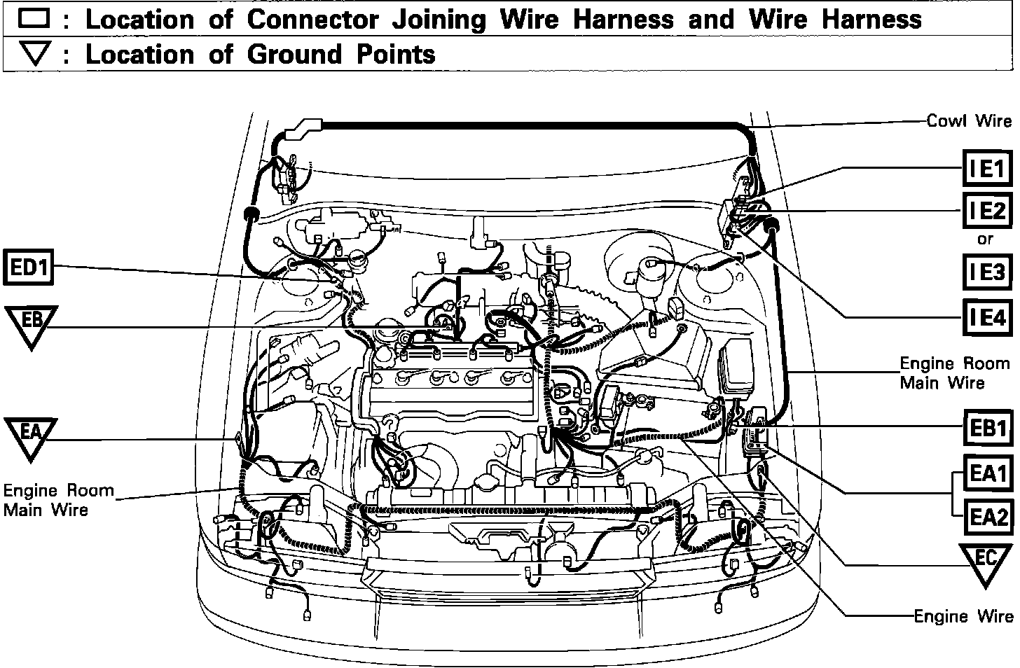 Locations Of Connector Joining Wire Harness, Wire Harness And Ground Points: