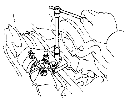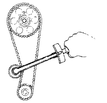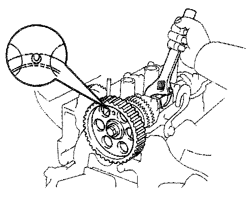 (d) Turn the hexagonal wrench head portion of the camshaft, and align the hole of the camshaft timing pulley with the timing mark of the bearing cap.