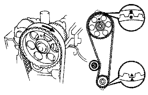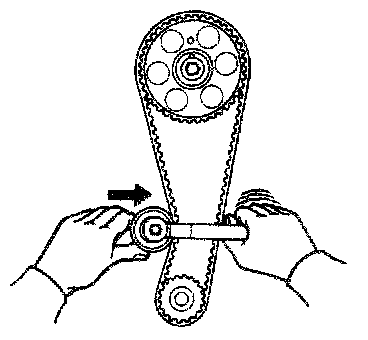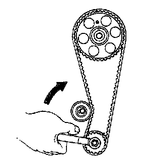 HINT: If reusing the timing belt, align the points marked during removal, and install the belt with the arrow pointing in the direction of engine revolution.
