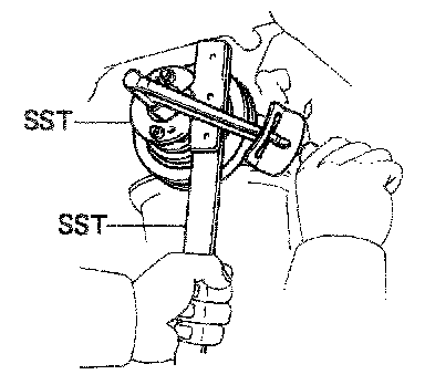 (C) Using SST 09213-14010 and 09330-00021, install the pulley bolt.