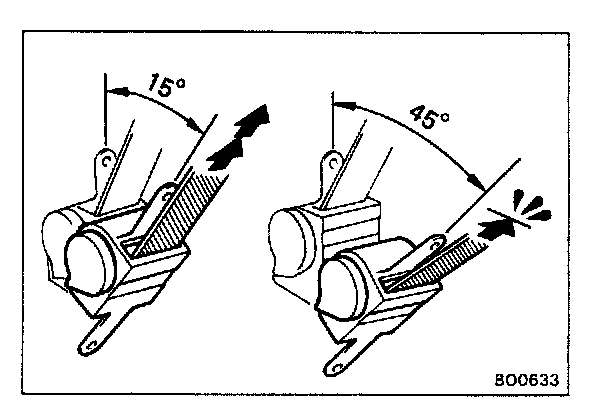 (c) Verify that the belt can be pulled out at a tilt of 1 5 degrees or less, and cannot be pulled out at over 45 degrees of tilt.