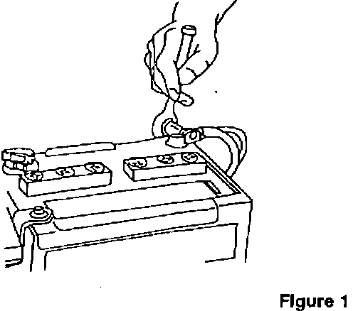 a) Using a 10 mm socket, loosen and remove the negative lead from the battery as shown in Figure 1.
