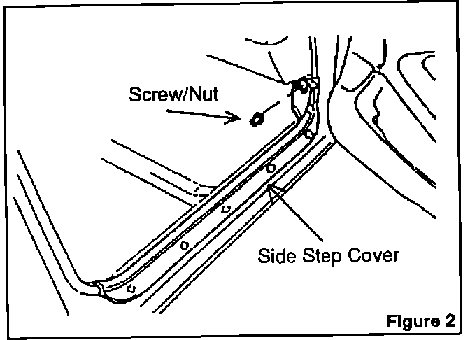 a) Remove the passenger side step/cowl cover by gently prying loose as shown in Figure 2.