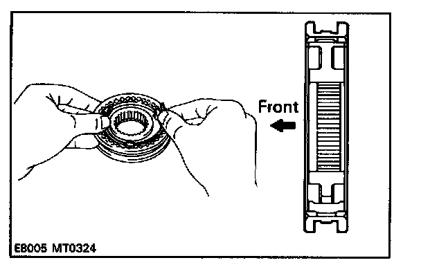c. Place the synchronizer ring on the gear and align the ring slots with the shifting keys.