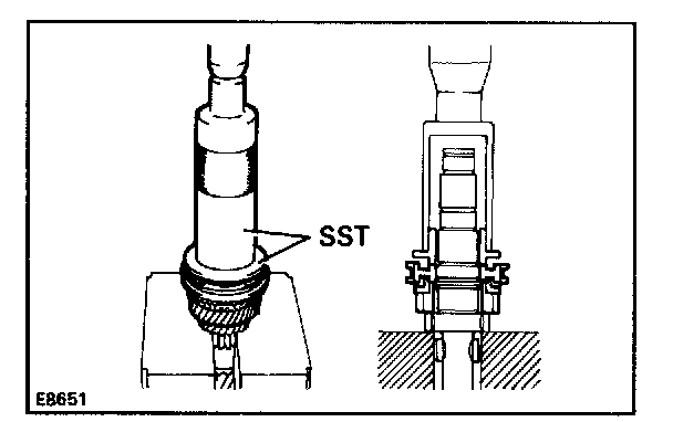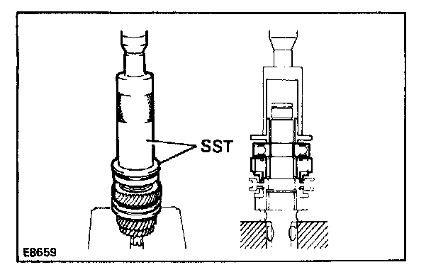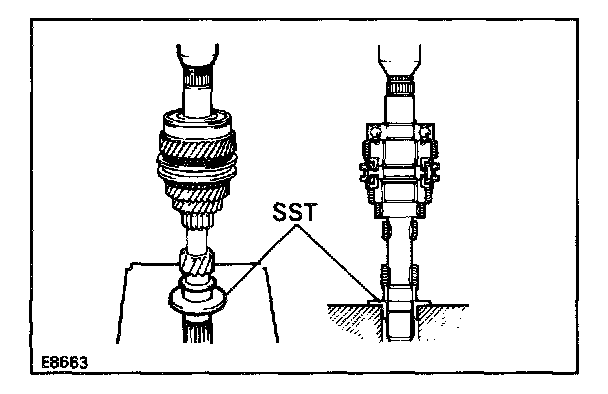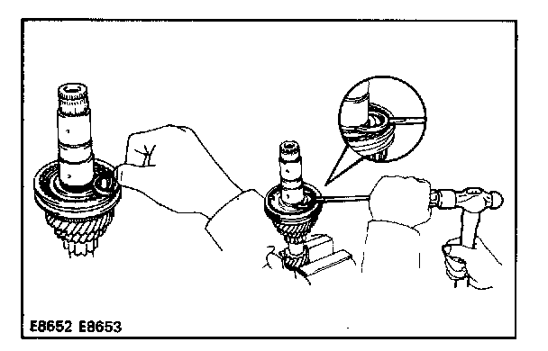 d. Using SST and a press, install the 3rd gear and No.2 hub sleeve.