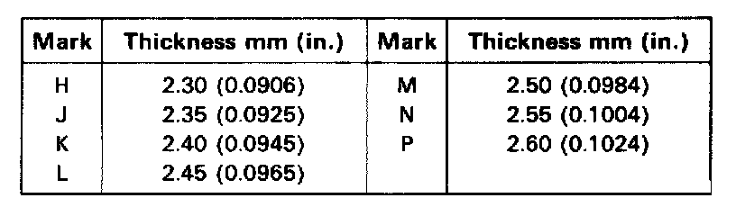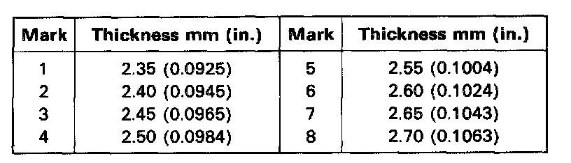 Standard clearance: 0.10 - 0.35 mm (0.0039 - 0.0138 in.)