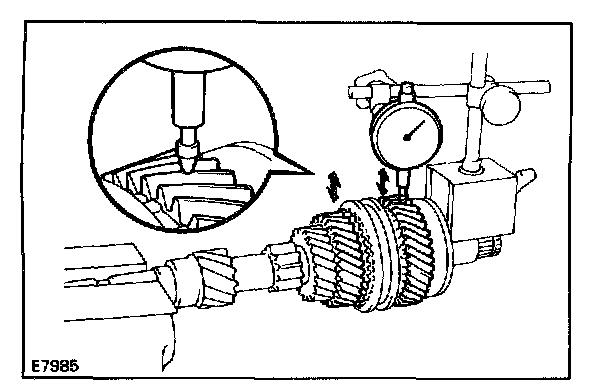 Using dial indicator, measure the oil clearance between the gear and shaft.