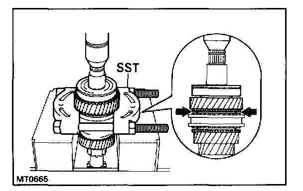 5. REMOVE NEEDLE ROLLER BEARINGS, SPACER AND SYNCHRONIZER RING