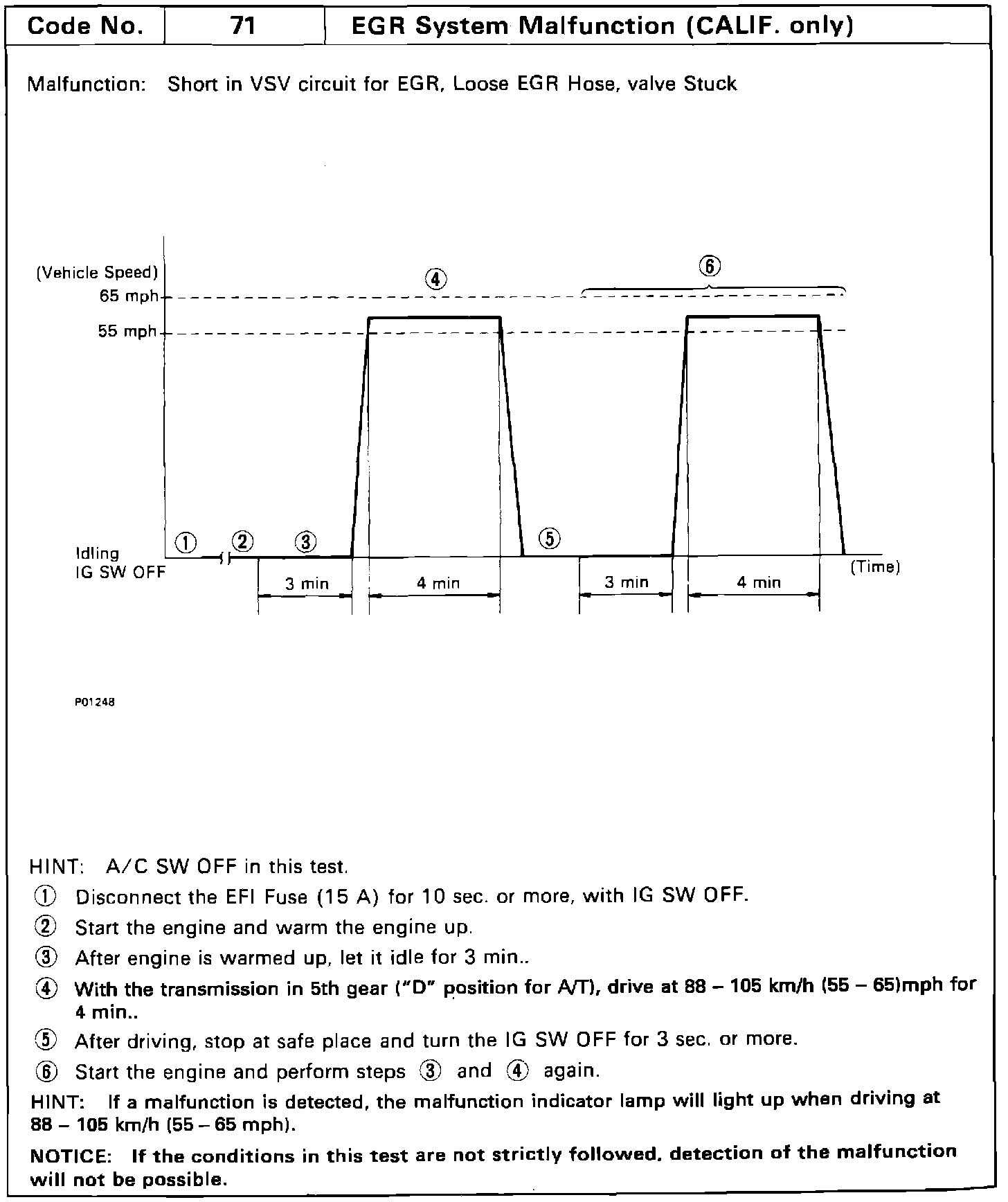 Code 71 Detection Driving Pattern: