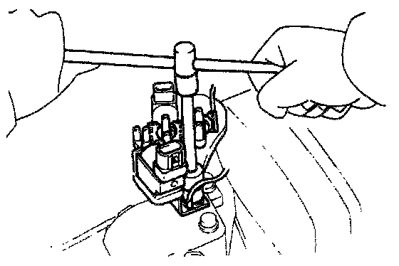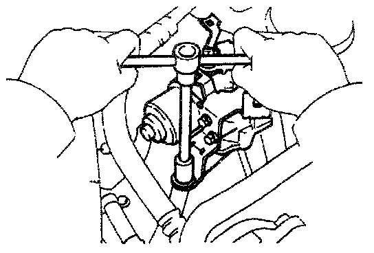 (b) Tighten the adjusting bolt. pushing down the generator from lower side of the vehicle with the generator bracket as fulcrum.