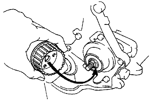 Install the timing belt, ensure that there is tension between the crankshaft timing pulley, oil pump pulley and camshaft timing pulley.