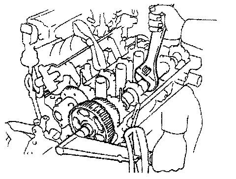 (c) Hold the hexagonal wrench head portion of the cam shaft with a wrench. and tighten the timing pulley bolt.