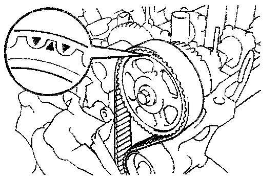 HINT: If reusing timing belt, align the points marked during removal and install the belt with the arrow pointing in the direction of engine revolution.