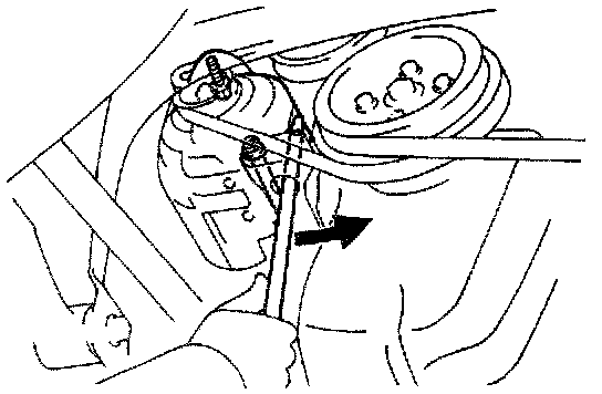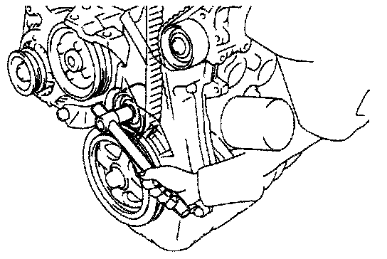 (b) Pry the pulley toward the left as far as it will go and temporarily tighten the bolt.
