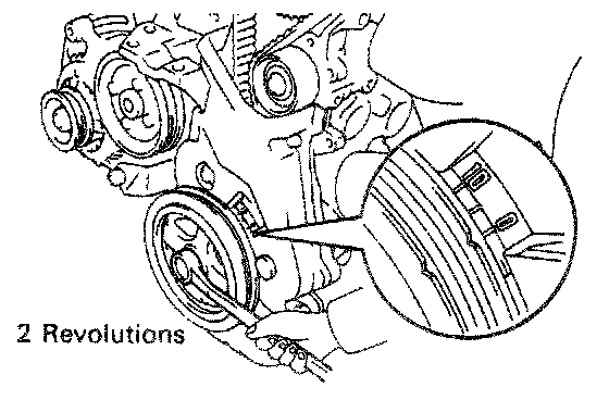 (b) Turn the crankshaft pulley 2 revolutions from TDC to TDC.