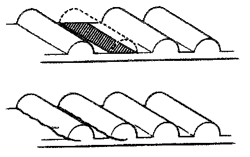 ^ Do not utilize belt tension when installing or removing the set bolt of the camshaft timing pulley. If there are defects, as shown in the illustrations, check the following points and replace the timing belt if necessary.