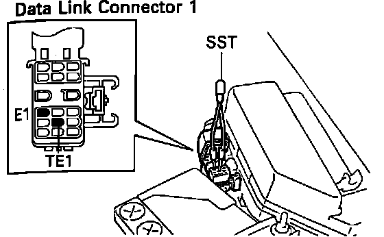 2. Using a jumper wire or Toyota service tool #SST 09843-18020, jump data link connector terminals E1 and TE1.