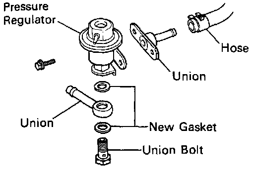 - Connect the fuel return hose and hose to the pressure regulator with union, new gaskets and union bolt.
