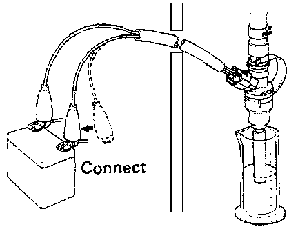 - Connect wire to the injector and battery for 15 seconds and measure the injection volume with the graduated cylinder. Test each injector two or three times.