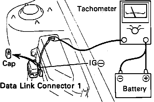 2. Connect a tachometer to the service connector of the distributor or terminal IG of the check connector.