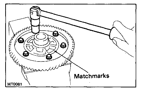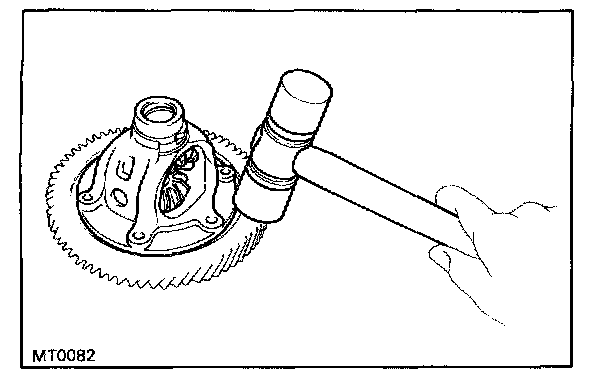 c. Using a copper hammer, tap on the ring gear to remove it from the case.