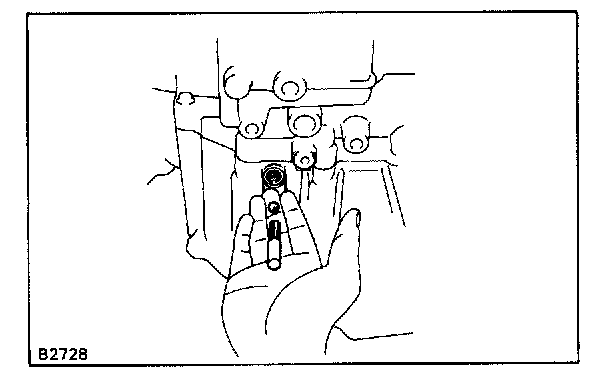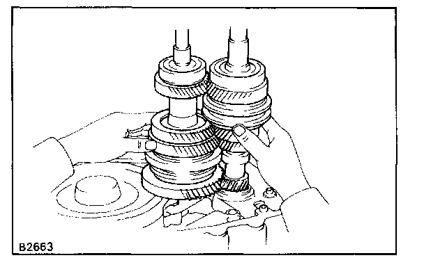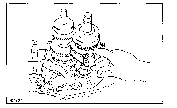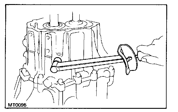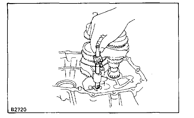 b. Install the No.1 fork shaft into No.1 shift fork hole.