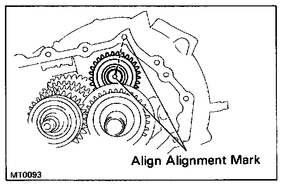Install the reverse idler gear, thrust washer and shaft as shown.