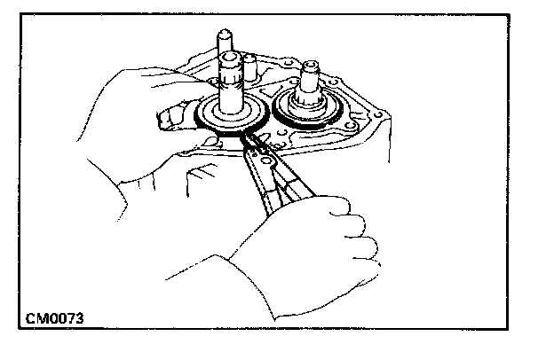 HINT: If it is difficult to install the snap rings, pull up the shaft.