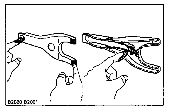 a. Place the No.1 and No.2 shift forks into the groove of No.1 and No.2 hub sleeves.