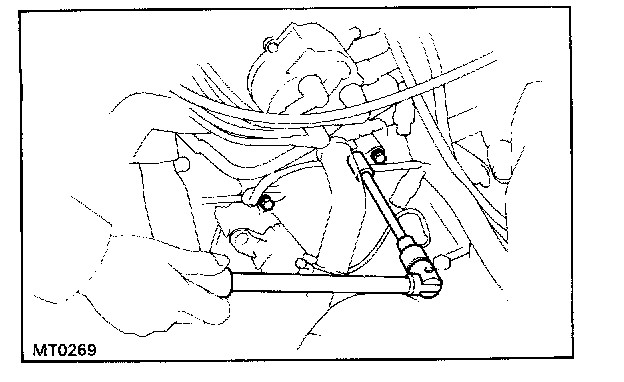 Remove the mounting bolts and lay the starter alongside the engine.