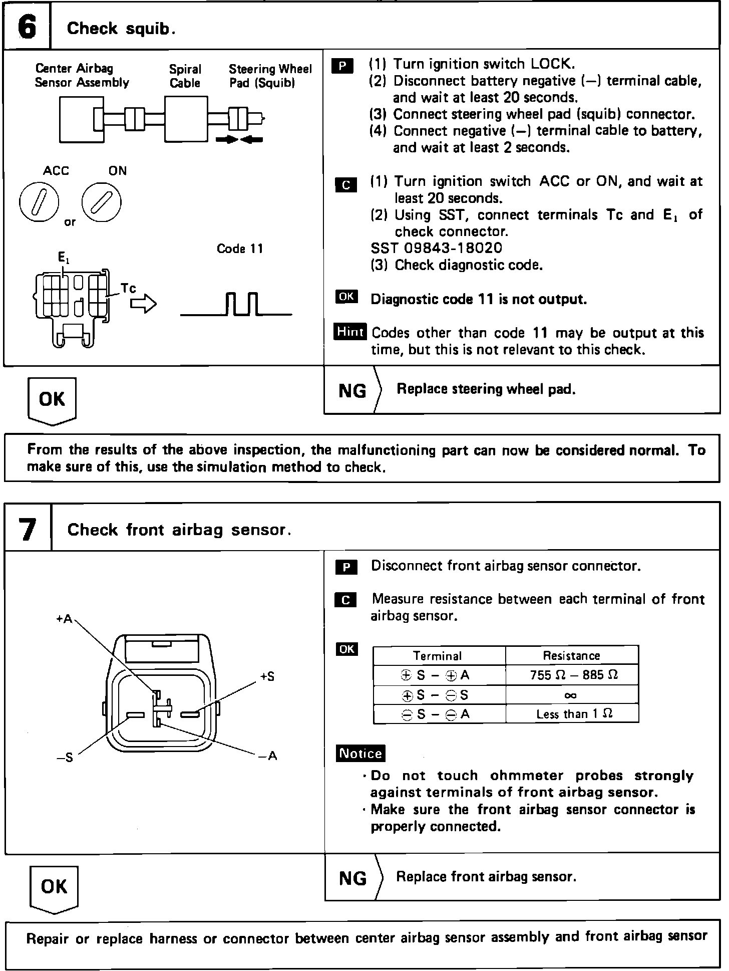 Fig. 27 Diagnostic Code 11 (Short In Squib Circuit Or Front Airbag Sensor Circuit, Part 6 Of 6). Celica, MR2 & Supra: