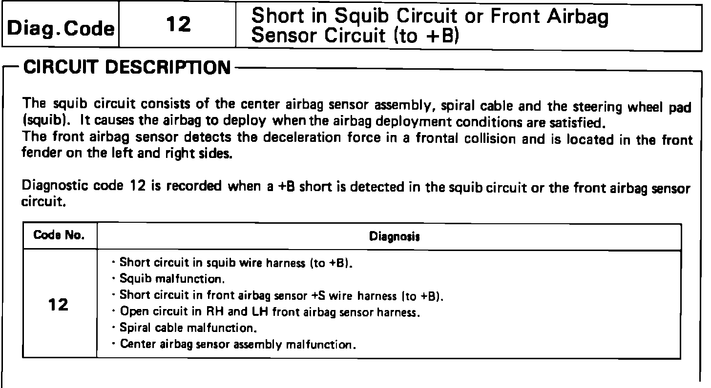 Fig. 28 Diagnostic Code 12 (Short In Squib Circuit Or Front Airbag Sensor Circuit, Part 1 Of 5). Celica, MR2 & Supra: