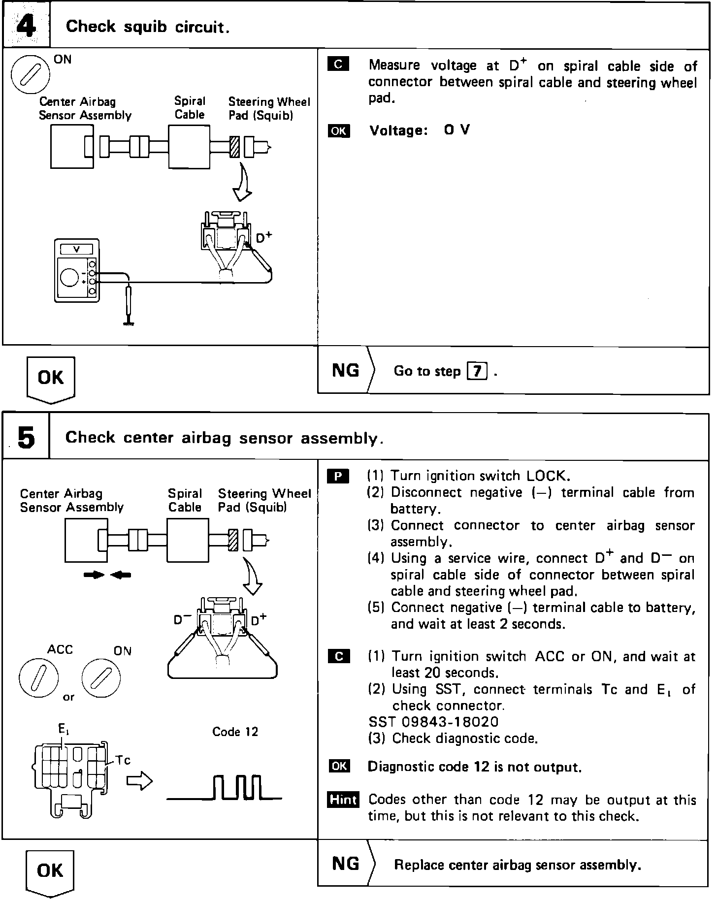 Fig. 28 Diagnostic Code 12 (Short In Squib Circuit Or Front Airbag Sensor Circuit, Part 5 Of 5). Celica, MR2 & Supra: