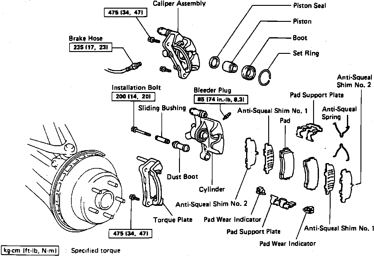 Fig. 1 Exploded View Of Rear Disc Brake Caliper Assembly. Supra & Celica: