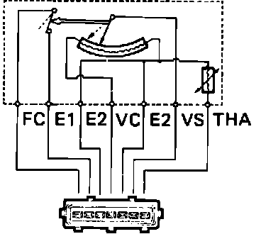 The airflow meter measures intake air volume, and converts these readings into voltage signals by means of a variable resistor (potentiometer).
