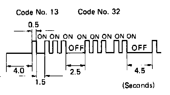 ^ After all the codes have been signalled there will be a 4.5 second pause and they will all be repeated as long as the terminals TE1 and E1 of the check connector are connected.