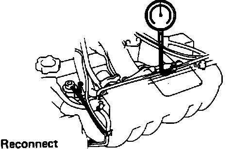 10. Reconnect the vacuum hose and check that fuel pressure reading returns to pressure noted in step 6.