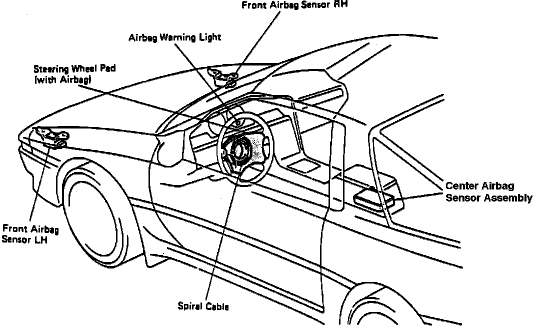 Fig. 2 SRS Component Locations. Celica & Supra: