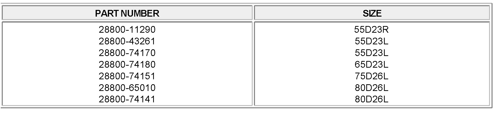 The above batteries are supplied on Japan (TMC) production vehicles only.
